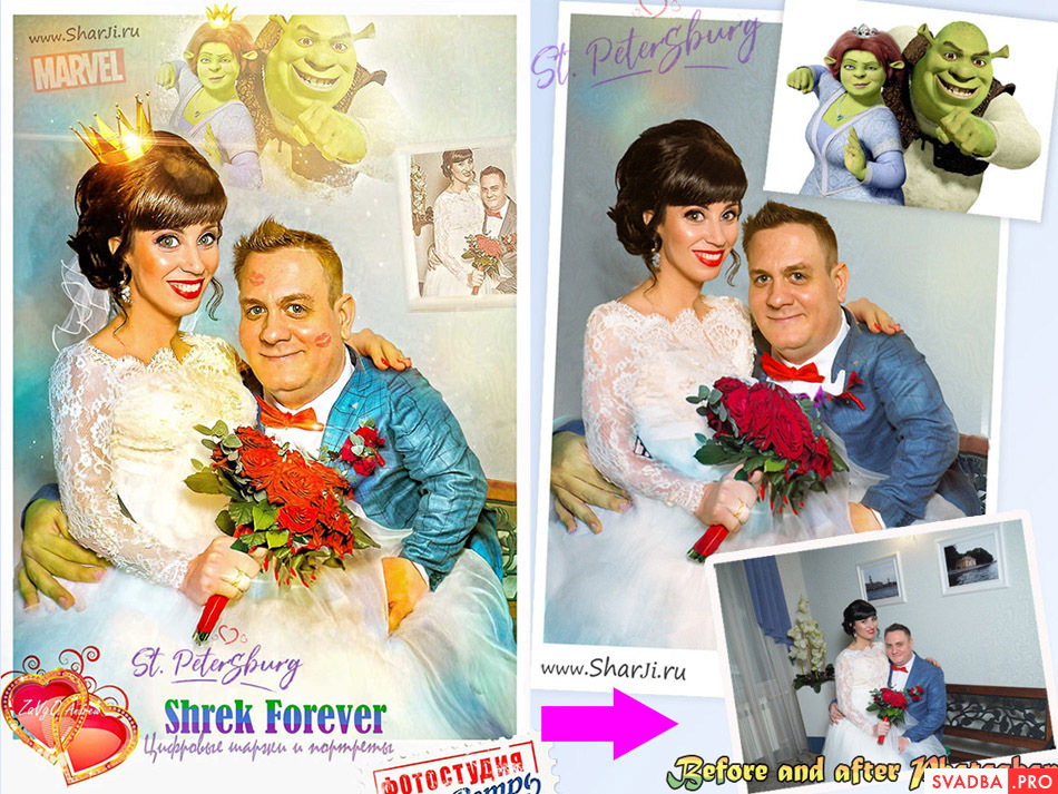 Shrek Forever. Санкт-Петербург. Цифровые шаржи до и после Фотошопа.