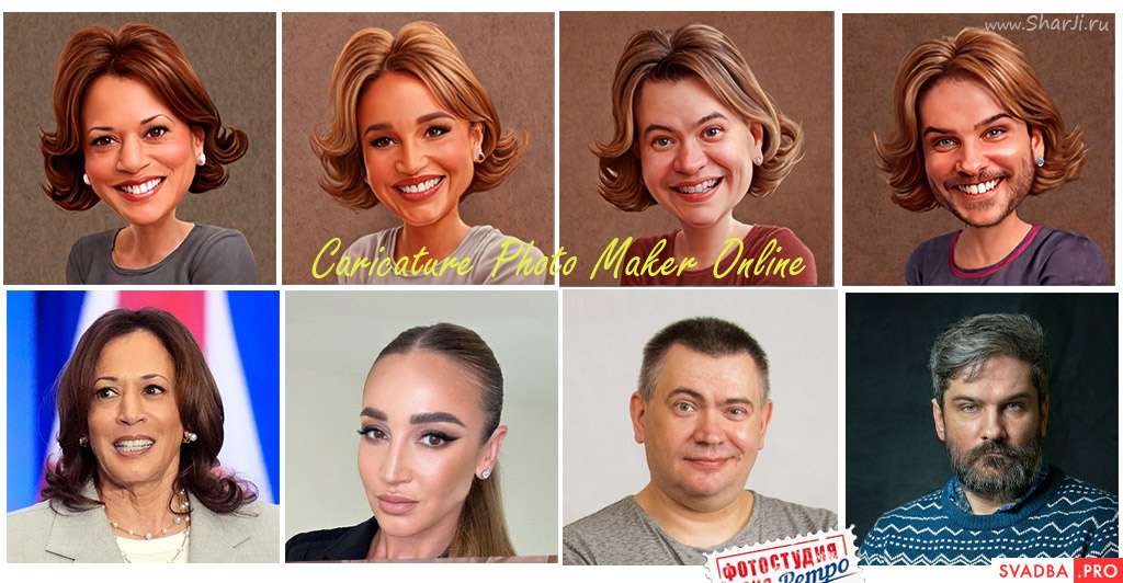 Тестируем популярный сайт caricaturer.io. Шарж по фото нейросеть онлайн бесплатно. Настройки «по умолчанию», доверяем ИСКУССТВЕННОМУ ИНТЕЛЛЕКТУ.Создаём шарж на Камалу Харрис, Ольгу Бузову и простых жителей Санкт-Петербурга.