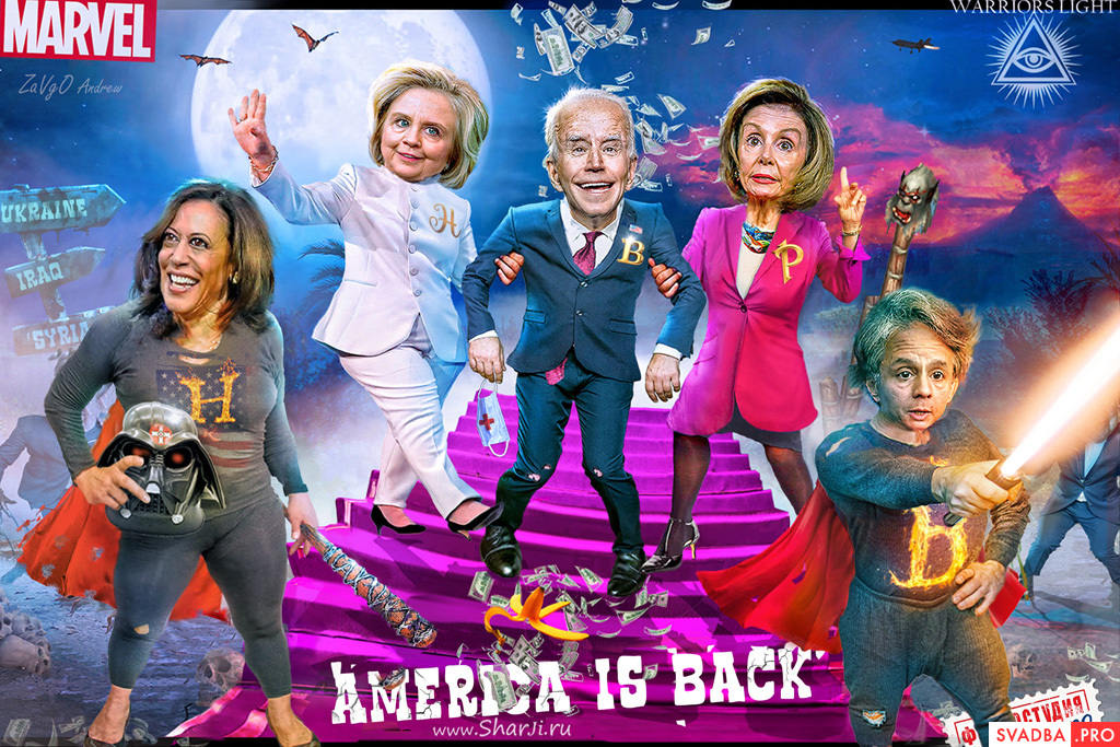 Новые супергерои: Джо Байден, Хиллари Клинтон, Нэнси Пелоси, Камала Харрис, Антошка Блинчик (Энтони Блинкен).
