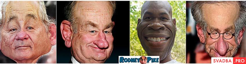 Известный иллюстратор из Луизианы Rodney Pike создал огромное количество цифровых шаржей американских знаменитостей.Рассмотрим техническую сторону. Что ты здесь не так! Первое впечатление: это не весёлые картинки, а мутанты, уродцы из фильма ужасов. С тонкими шеями, большими ушами, носами напоминающие онкологические заболевания. Слишком реалистично выглядят. Если простого американца разбудить ночью перед этими «шаржами», реакция может быть не предсказуема.